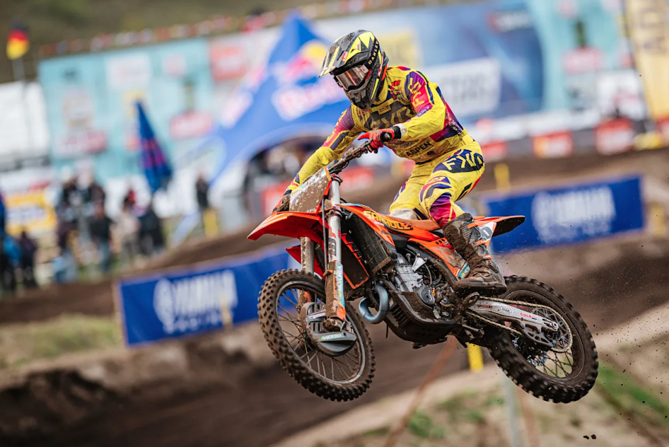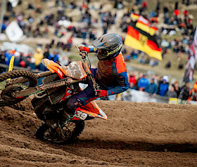 Perfekter Auftakt: Max Nagl (D/Dörr Motorsport Triumph Racing) setzt sich beim Saisonstart des ADAC MX Masters in Grevenbroich mit drei Laufsiegen an die Tabellenspitze. Der amtierende Meister Roan van de Moosdijk (NL/KTM Kosak Racing Team) begann die Saison mit dem zweiten Veranstaltungsrang ebenfalls stark. Tom Koch (D/KTM Sarholz Racing Team) kehrte mit dem dritten Platz erfolgreich zurück in die Meisterschaft.