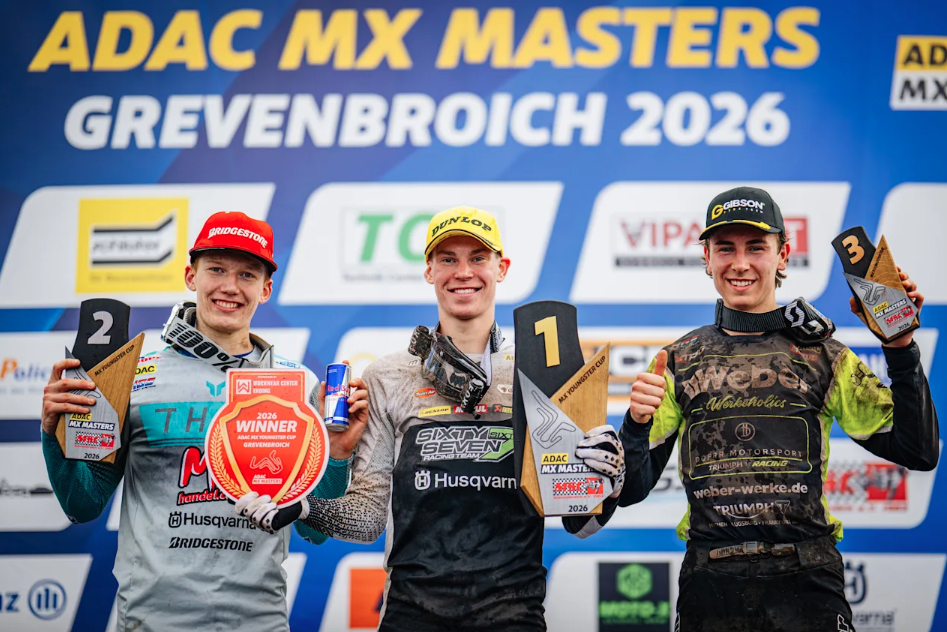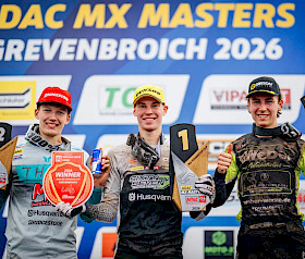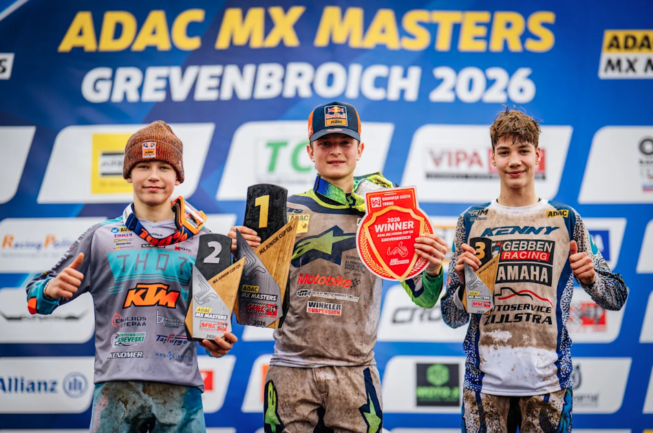Ziemer und Lucas Leok drückten dem ADAC MX Junior Cup 125 ihre Stempel auf. Leok brillierte im ersten Lauf mit einem Start-Ziel-Sieg und distanzierte dabei den Rest des Feldes deutlich. Aston Allas (EST/Redmoto Racing) lag lange auf dem zweiten Platz, bis er vier Runden vor Schluss nach einem Sturz zurückfiel. Der Acerbis Best Qualifier Ziemer und Timo Heuver (NL/JP Xtreme Xperience) waren die Nutznießer und rückten auf die Plätze zwei und drei vor. Auch im zweiten Lauf ging der Red Bull Holeshot an Leok. Doch Ziemer attackierte schnell, übernahm in der ersten Runde die Führung und baute dann einen mehrsekündigen Vorsprung auf, den er bis ins Ziel kontrollierte. Das Führungsduo distanzierte den Rest des Feldes im Rennverlauf deutlich. Travis Leok (EST/MX-Handel Husqvarna Racing) kam auf den dritten Platz. In der Tageswertung gingen der Sieg und das Red Plate des Tabellenführers aufgrund des besseren Resultats im zweiten Lauf an Ziemer, auch wenn Lucas Leok dieselbe Punktzahl erzielte. Kay Zijlstra (NL/Gebben Motoren) reichten die Ränge vier und sieben für den dritten Platz in Grevenbroich. Finn Lange (D/KTM GST Berlin Racing) und Travis Leok rundeten die Top-Fünf des Tages ab. „Die Strecke war im zweiten Lauf schon sehr ausgefahren, das hat mir Spaß gemacht. Bei dem Regen habe ich Lucas schnell attackiert und dann versucht, mir einen Vorsprung herauszufahren, was erfolgreich war. Das Podium war mein Ziel für den Auftakt und ich bin glücklich, dass ich das mit dem Sieg erreicht habe“, strahlte Ziemer.