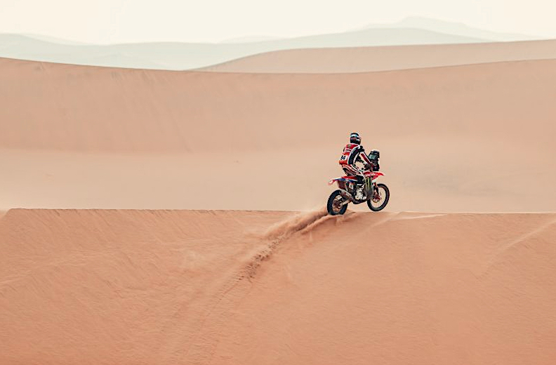 Skyler Howes setzte seine konstante Leistung bei der Dakar mit einem soliden vierten Platz fort und sicherte sich zudem Bonuszeit. Das dünenreiche Terrain kam sowohl dem Amerikaner als auch seiner Honda CRF450 RALLY entgegen und er absolvierte die zweitägige Marathonetappe problemlos, wodurch er seinen fünften Gesamtrang verteidigte.