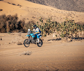 Das Ténéré Yamaha Rally Team startete mit Kevin Gallas, der im Rahmen der Ténéré Spirit Experience (TSE) für das offizielle Team fährt, in die 8. Etappe des Africa Eco Race (AER). Gallas führte die Gesamtwertung des Africa Eco Race 2026 mit sechs Minuten und zwölf Sekunden Vorsprung an, nachdem er am Vortag seinen zweiten Etappensieg errungen hatte. Die Fahrer eine Rundetappe, d. h. Start und Ziel befanden sich im Biwak in Aidzidine. Die Etappe umfasste lediglich 14 km Verbindungsstrecke und eine anspruchsvolle 415 km lange Wertungsprüfung mit mehreren Dünendurchfahrten.