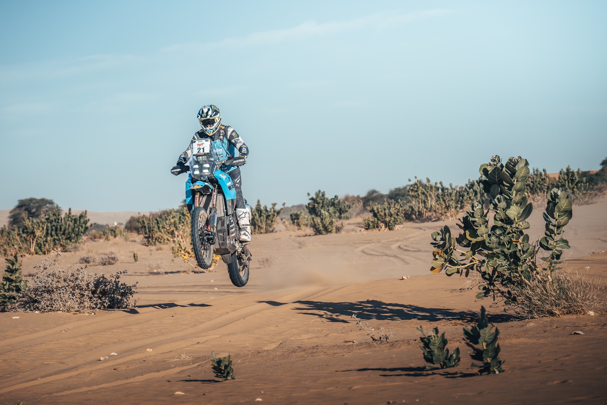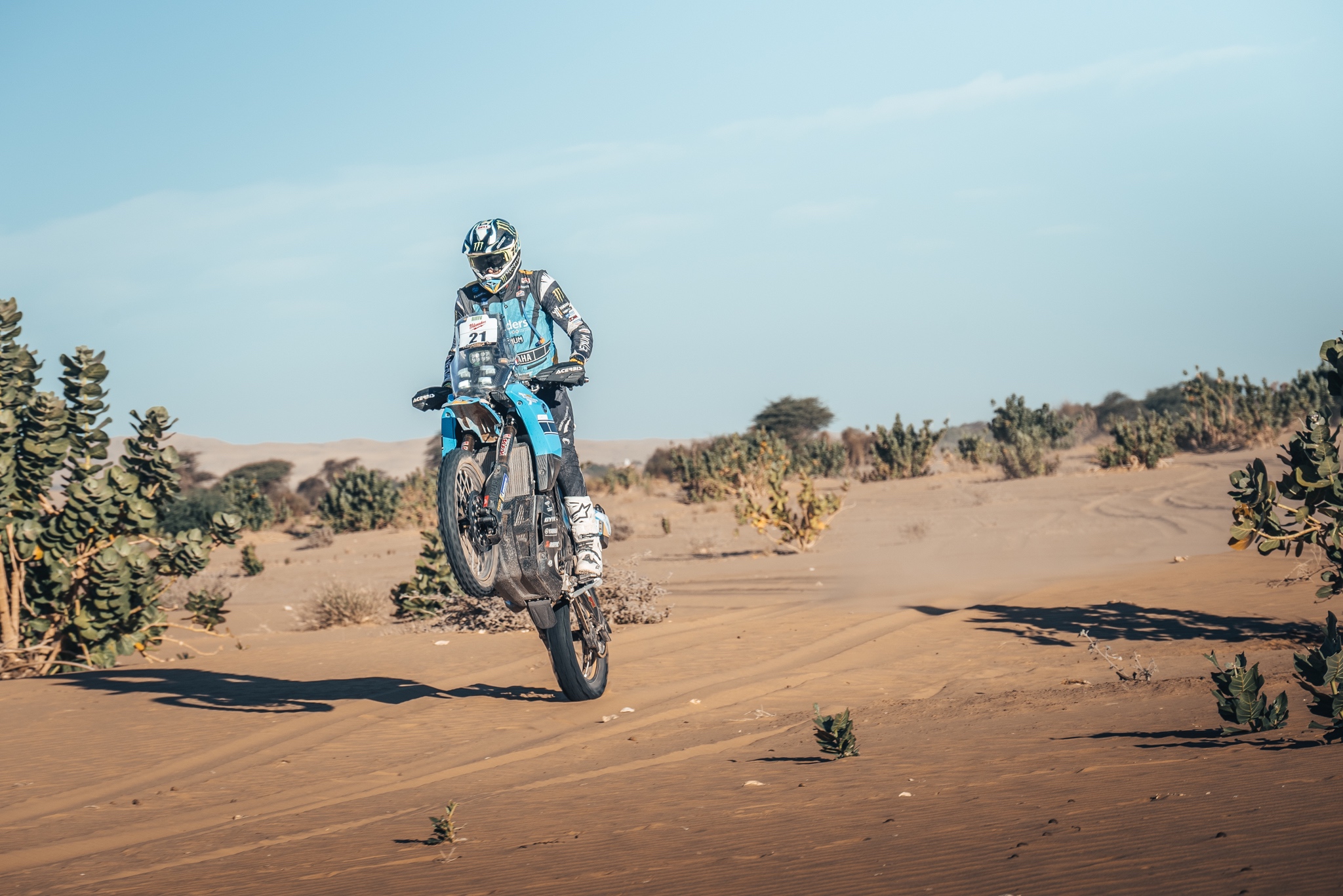Gautier Paulin, ehemaliger MXGP-Fahrer und fünffacher MXoN-Sieger, nimmt nach seinem Sieg in der Autoklasse bei der AER 2024 erstmals in der Motorradkategorie teil. Der 35-Jährige ließ sich seine mangelnde Erfahrung mit Roadbooks nicht anmerken, indem er lange Strecken der Etappe allein zurücklegte und mit seiner Ténéré 700 Rally förmlich durch die Wüste raste .