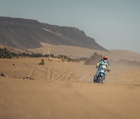 Die 9. Etappe der AER ist erneut anspruchsvoll, da das Biwak nach zwei Nächten in Aidzidine abgebaut wird und es weiter nach Ouad Naga geht. Es erwarten die Fahrer 65 km Verbindungsstrecken und eine herausfordernde 426 km lange Sonderprüfung, die sie erneut mit Dünen, felsigen Pfaden, Kamelgras und weichem Sand konfrontiert.