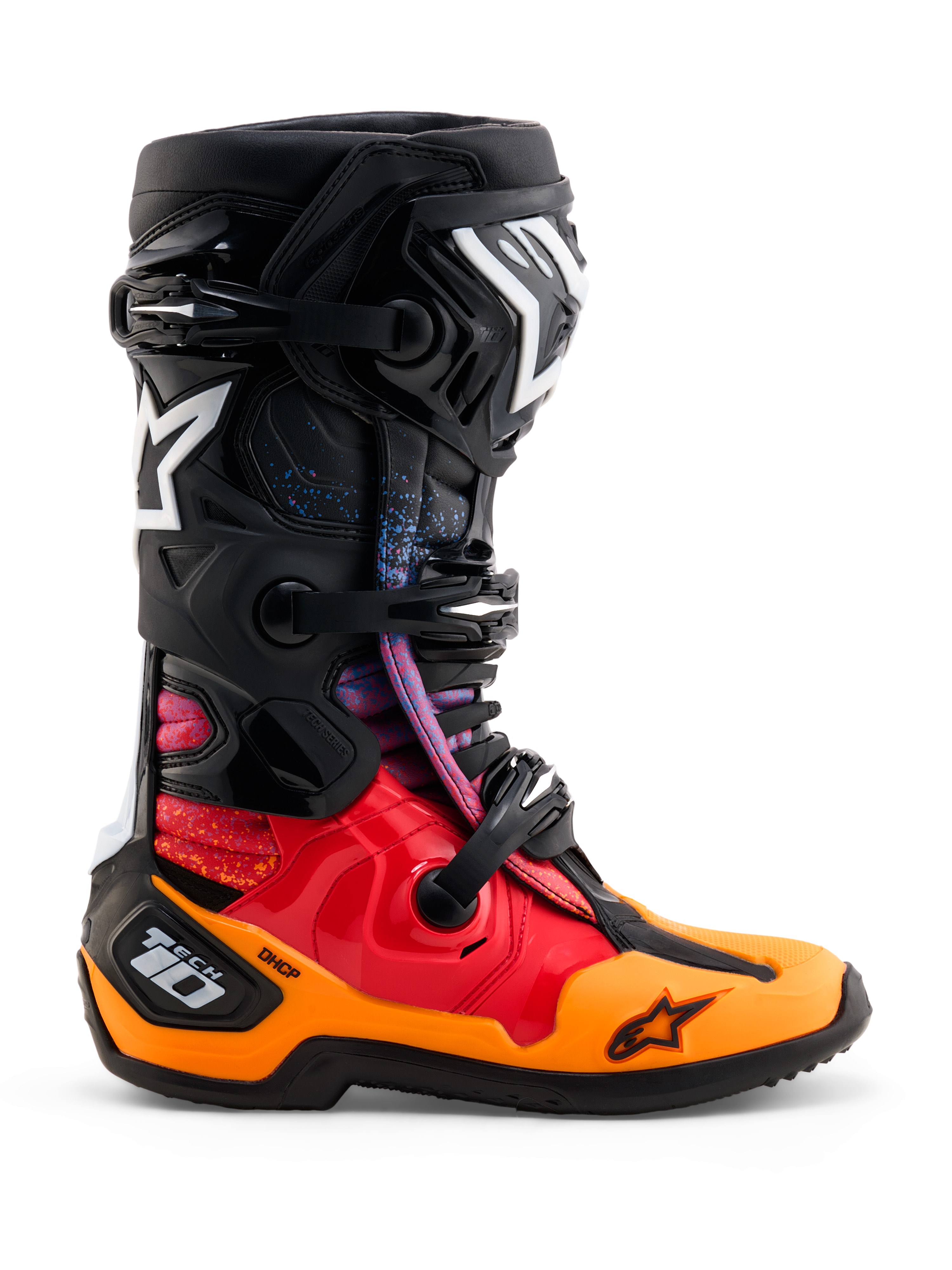 Inspiriert von unaufhaltsamer Dynamik, umfasst die Black Hole LE das Supertech Jersey und die Supertech Hose, den S-M10 Helm, die Tech 10 Stiefel und die Supertech Brille.