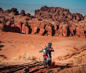 Nach technischen Problemen auf der sehr steinigen Etappe des Vortages verbrachte Martim Ventura eine lange Nacht im Marathon-Camp, um seine Honda CRF450RX RALLY zu reparieren. Da ihm nur wenige Alternativen zur Verfügung standen, konzentrierte sich der portugiesische Fahrer darauf, Hail zu erreichen, damit das Motorrad dem Monster Energy Honda HRC Team zur vollständigen Reparatur übergeben werden konnte.