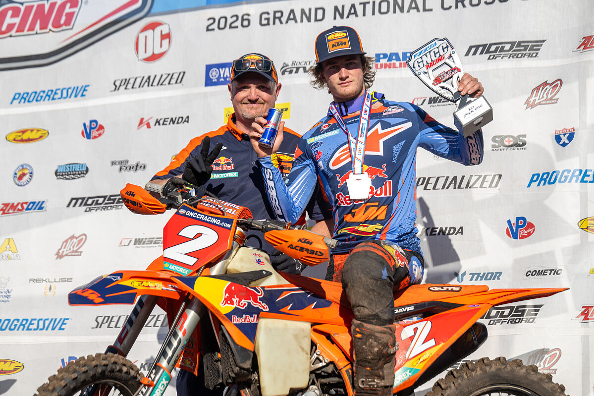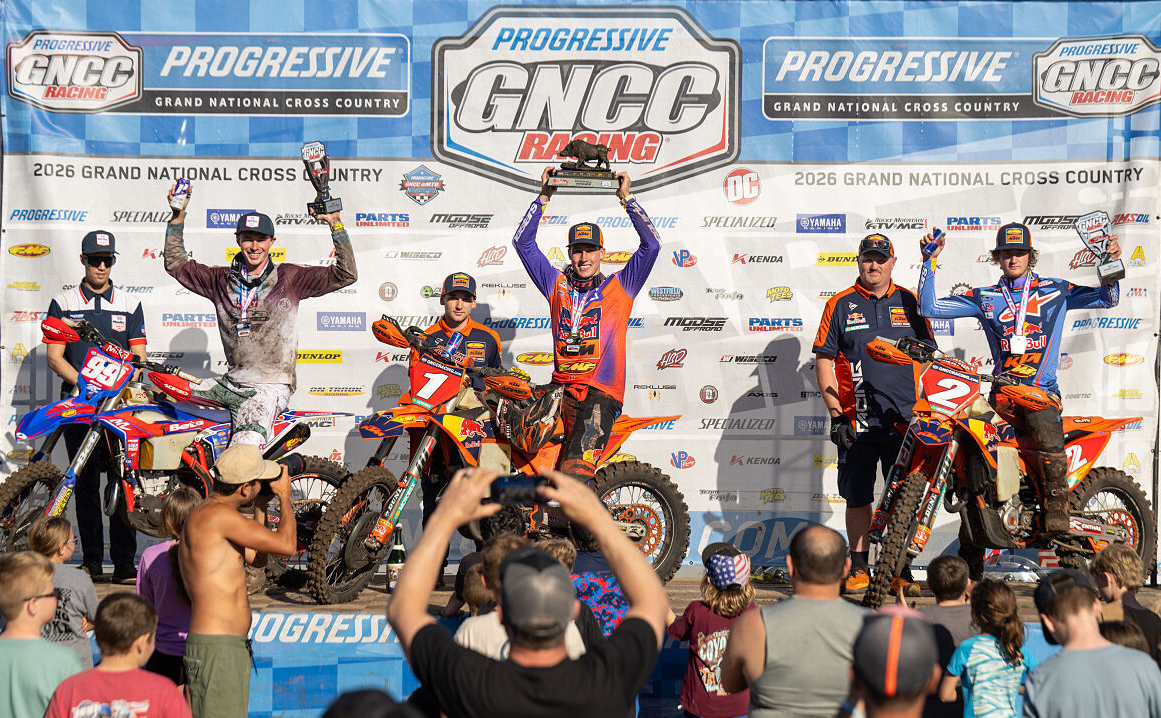 Die FMF KTM Factory Racing Fahrer Ben Kelley und Grant Davis erzielten beim Wild Boar GNCC in der zweiten Runde der Grand National Cross Country Series 2026 einen herausragenden Doppelsieg, während Dante Oliveira auf dem Glen Helen Raceway seinen dritten aufeinanderfolgenden Sieg in der National Grand Prix Championship (NGPC) des Jahres errang.