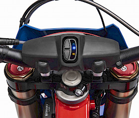 Die beiden Zündkerzen werden darüber hinaus über ein elektrischen System gesteuert, das die beiden voneinander trennt. Sollte also eine der beiden Zündkerzen durchbrennen, bleibt der Motor dennoch funktionstüchtig, wenn auch nicht mehr ganz so effizient. Es ist aber immerhin noch möglich, das Rennen oder die Tour ins Gelände zu Ende zu fahren.