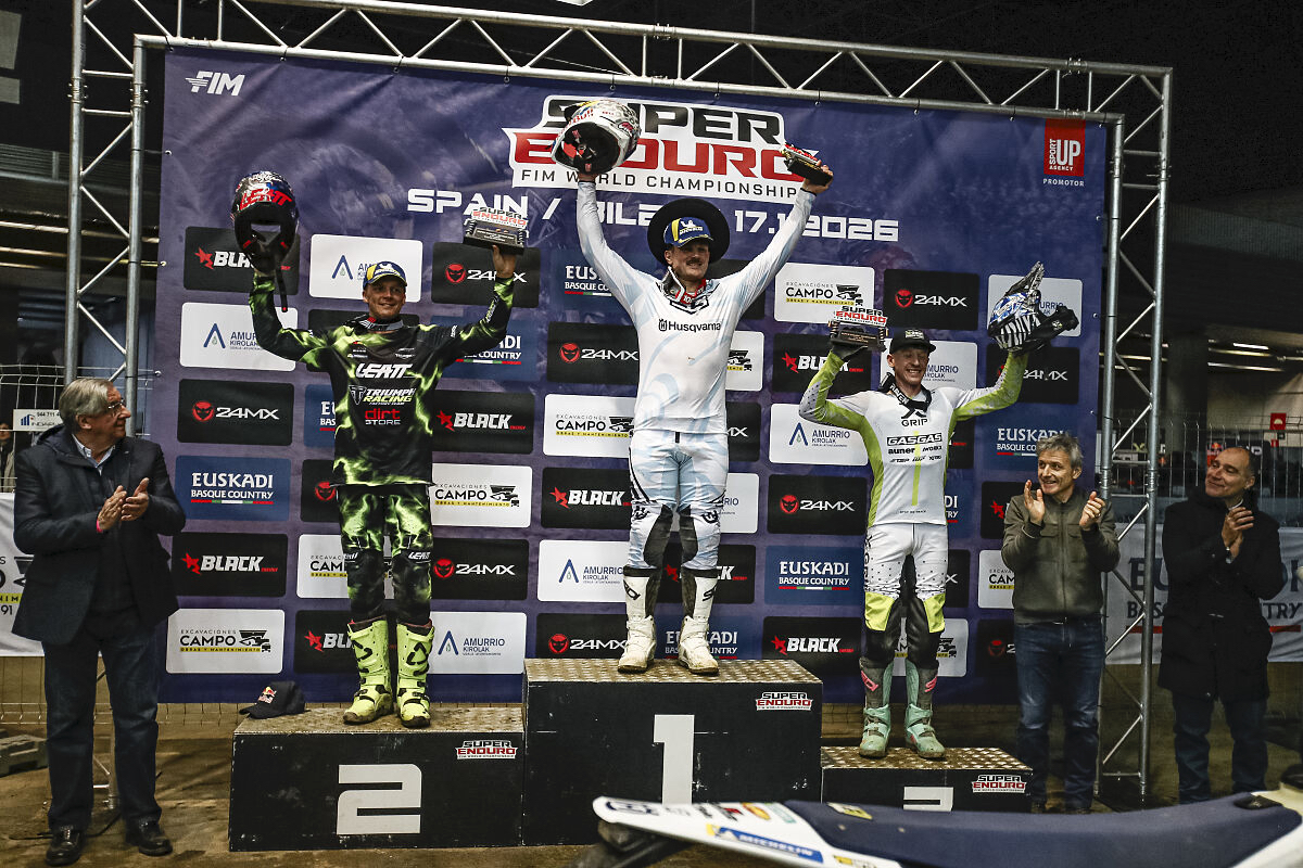 Nach einem weiteren makellosen Wochenende mit einem SuperPole-Sieg und drei Rennsiegen reiste Bolt aus Bilbao mit der maximal möglichen Punktzahl ab. Dieses Ergebnis festigt seine Führung in der FIM SuperEnduro-Weltmeisterschaft 2026 weiter. Der Husqvarna Factory Racing-Fahrer führt nach drei Runden nun mit komfortablen 40 Punkten Vorsprung. Die Rennserie wird am 31. Januar mit dem vierten Lauf in Budapest, Ungarn, fortgesetzt.