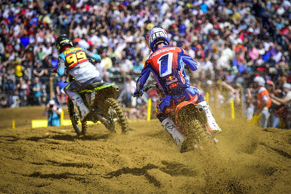 Es war ein überzeugender erster Gesamtsieg für McLellan, eine atemberaubende Demonstration seiner enormen Geschwindigkeit im Sand und es markiert den Durchbruch von Triumph als erfolgreicher Hersteller in der modernen Motocross-Welt. Ein unglaublicher Tag für alle Beteiligten! Mit dem Red Plate im Gepäck hat der Südafrikaner nun zwei Punkte Vorsprung in der Gesamtwertung auf den Titelverteidiger Simon Längenfelder.