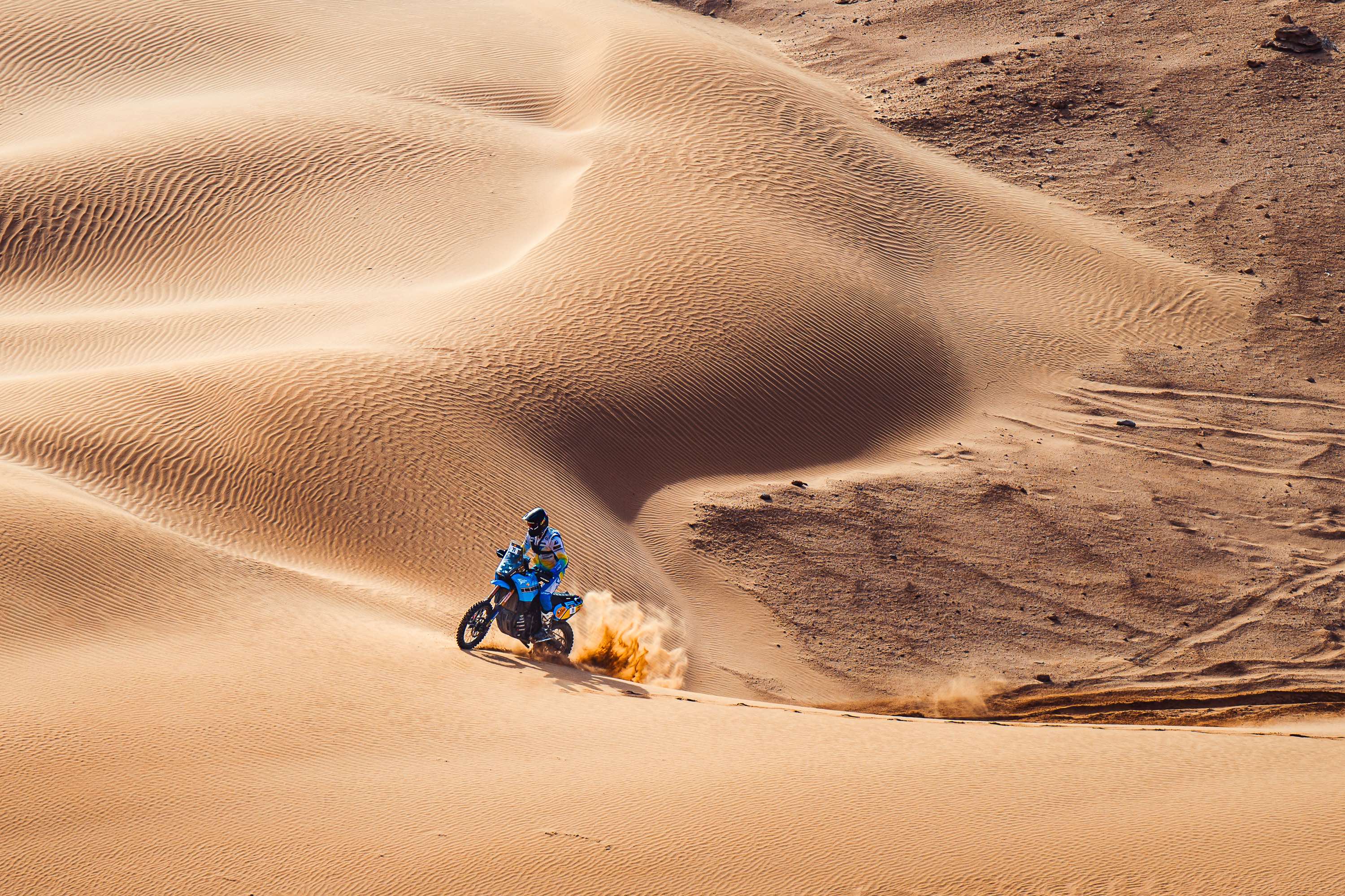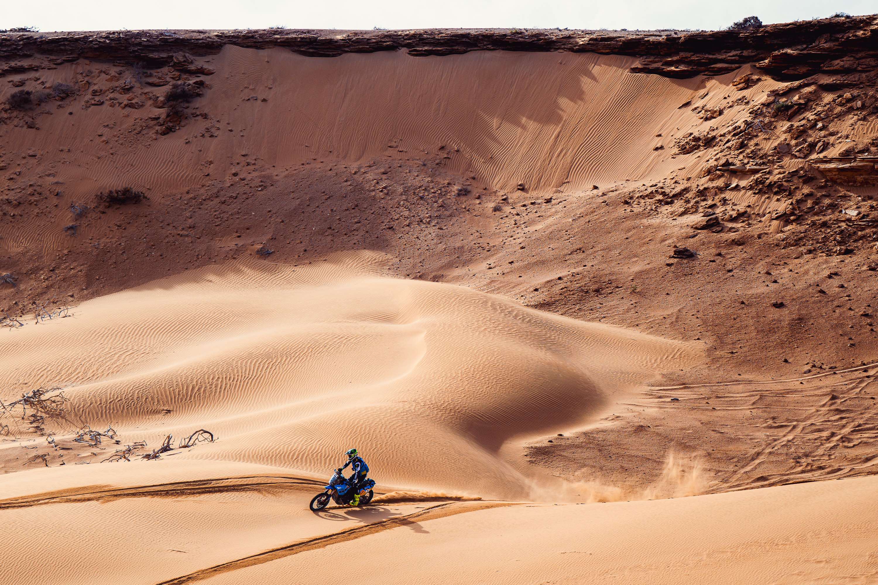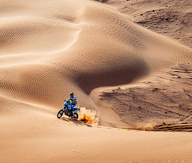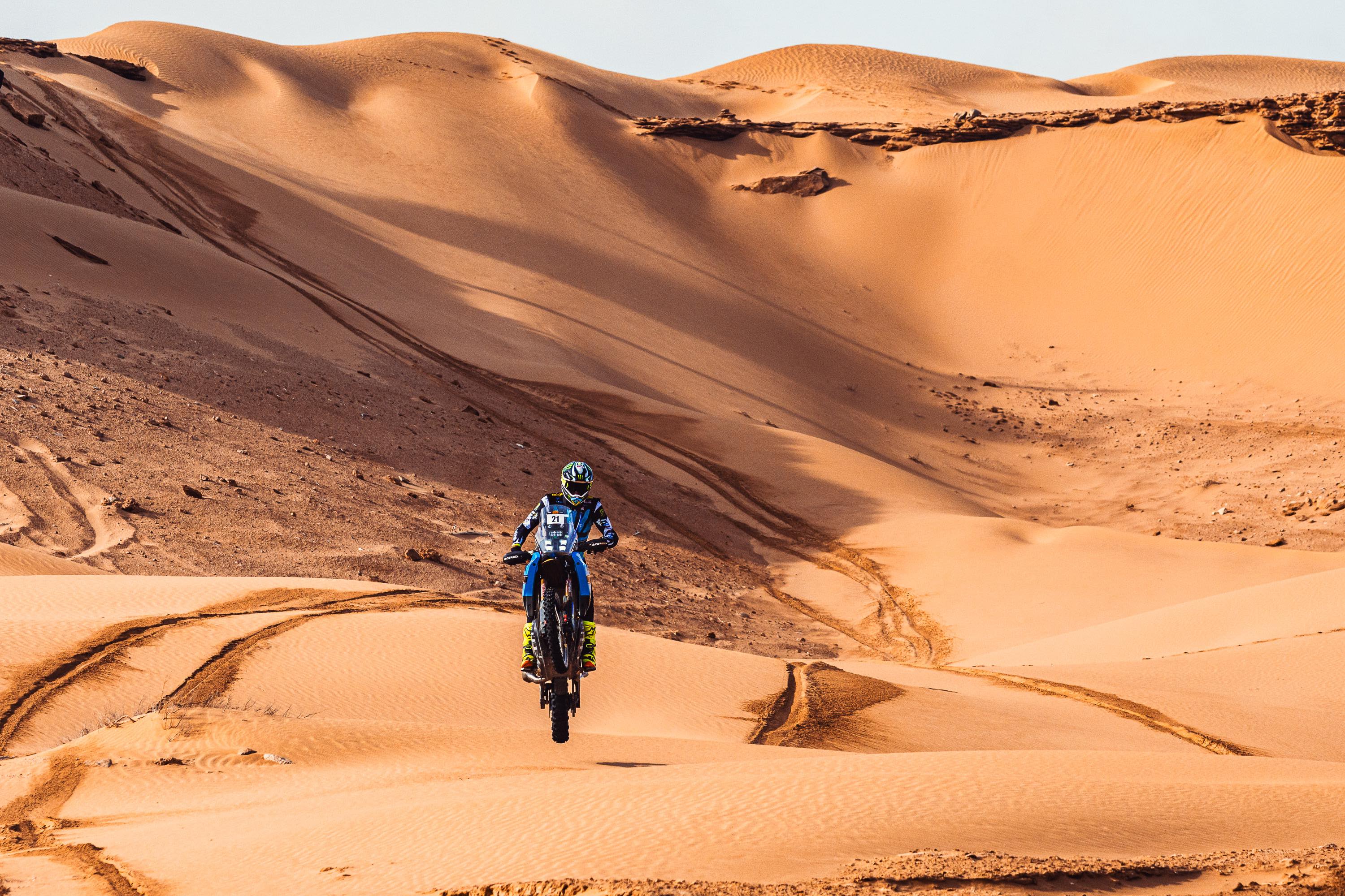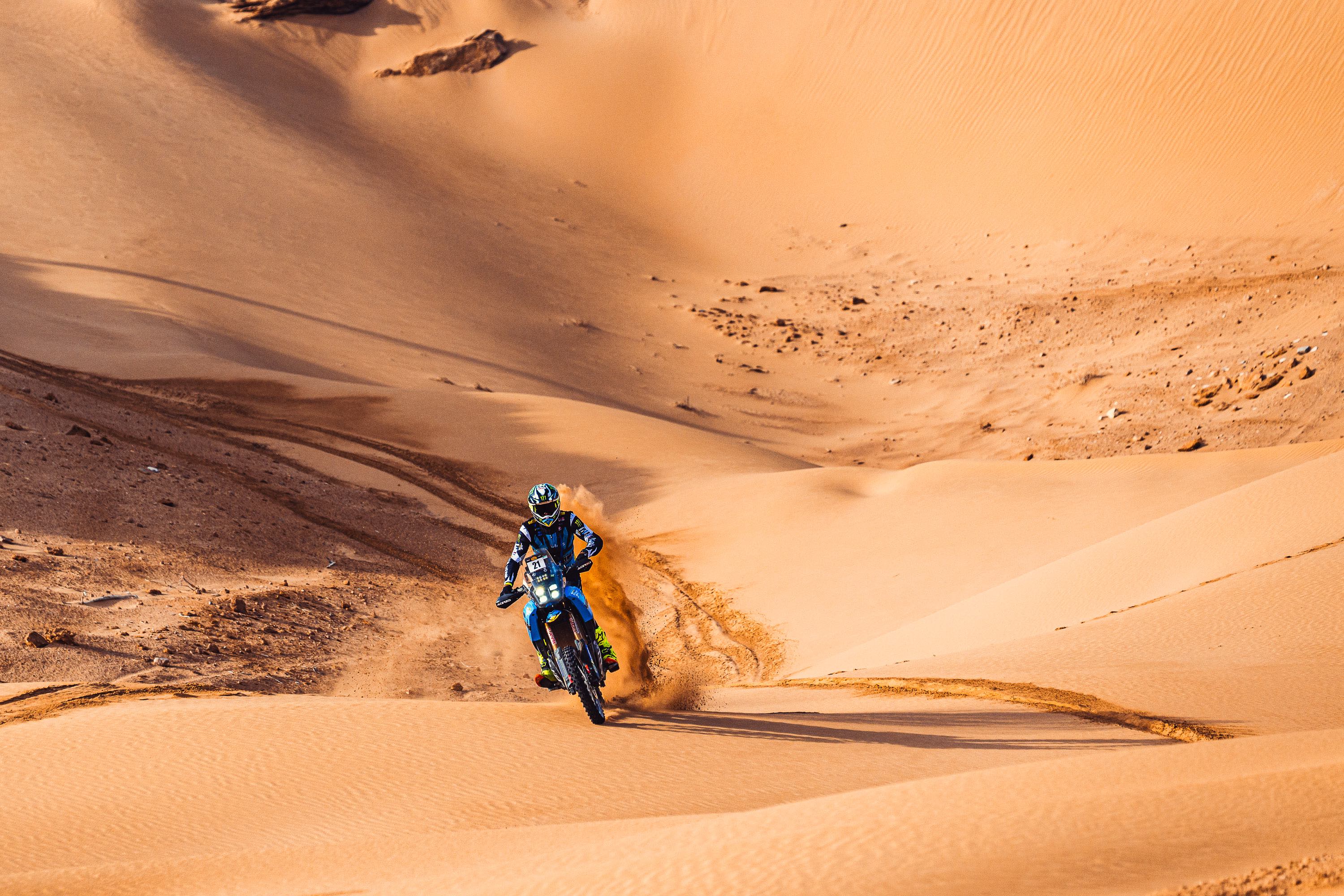 Die vierte Etappe führte vom Biwak in Laâyoune nach Tan-Tan Plage und umfasste 216 km Wertungsprüfung, 98 km Verbindungsstrecke sowie einen 72 km langen Transfer, insgesamt also 386 km. Es war ein weiterer langer und anspruchsvoller Tag in der Wüste, doch das Ténéré Yamaha Rally Team zeigte erneut eine starke Leistung von Anfang bis Ende. Paulin sicherte sich mit seiner Ténéré 700 Rally seinen zweiten Etappensieg der Rallye in 4 Stunden, 21 Minuten und 11 Sekunden.