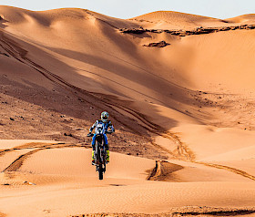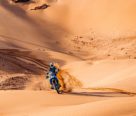 Kevin Gallas: „Die Etappe zu eröffnen war nicht einfach, aber es war eine sehr gute Erfahrung und ein weiterer wichtiger Schritt für mich in der Wüste, da ich mit jedem Kilometer dazulerne. Das Roadbook-Tablet funktionierte einwandfrei, wodurch ich pushen konnte. Ich war mit meinem Tempo zufrieden. Das Motorrad lief super und der erneute Podiumsplatz ist ein starkes Ergebnis. Wir lernen und entwickeln uns Tag für Tag weiter.“