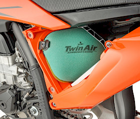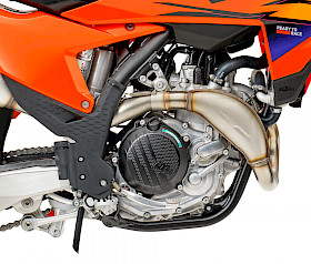 Die KTM 450 SMR 2026 verfügt über eine neue isolierende Kappe für den CPC-Kraftstoffanschluss. Das sorgt nicht nur für mehr Schutz vor Stößen und Fremdkörpern, sondern auch für eine zusätzliche Barriere gegen Schmutz oder andere Einflüsse, welche die Motorleistung oder den Kraftstofffluss aus dem 7,2-Liter-Tank beeinträchtigen könnten. Der Kraftstofffilter im Schlauch bleibt zuverlässig an seinem Platz und ist leicht zugänglich.