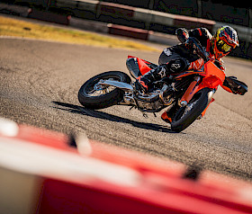 Die KTM 450 SMR, KTMs konkurrenzlose Supermoto für den Rennsport, präsentiert sich für 2026 mit gezielten Optimierungen und neuem Design.