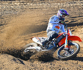 Ebenso ist der Neubrandenburger Eric Rakow in der DMX 250 schon durch. Auch er deckelte seinen Titelgewinn bereits drei Wochen vom Thurm-Wochenende auf der deutschen WM-Strecke, dem Teutschenthaler Talkessel.