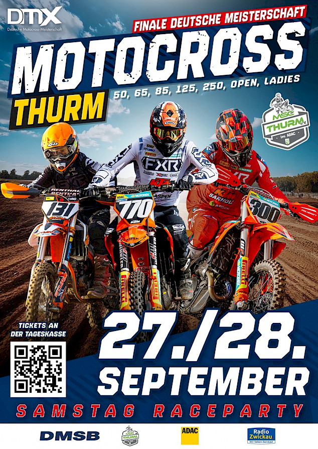 Am kommenden Wochenende, Samstag und Sonntag, dem 27. bzw. 28. September, steigt im westsächsischen Thurm das Saisonfinale der Deutschen Motocross Meisterschaft „DMX Nationals“. Dabei werden in fünf der sieben Solo-Klassen noch die Meister 2025 gesucht.