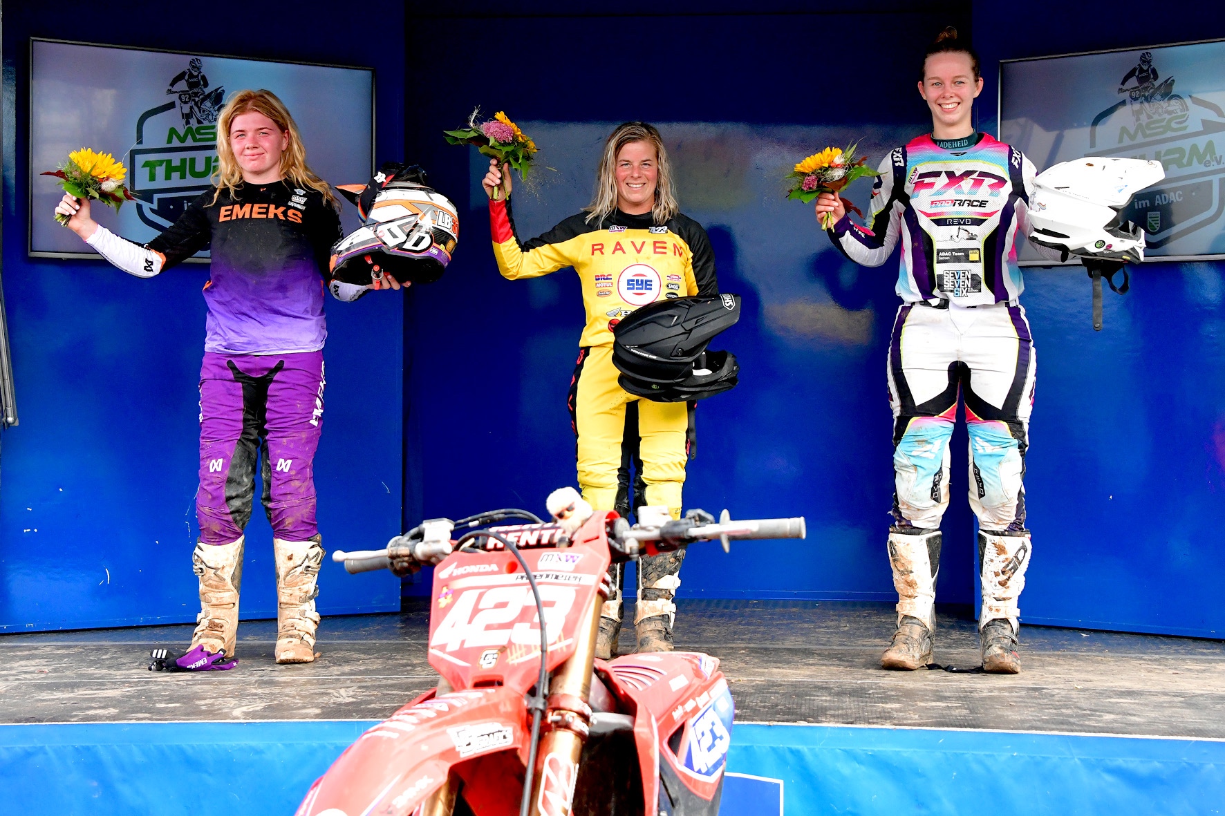 Bei den Damen, für die in diesem Jahr erstmals das höchste nationale Prädikat ausgeschrieben wurde, war der Meistertitel von Larissa Papenmeier aus Bünde eigentlich nur noch eine Formsache. Die frischgebacken WM-Vierte 2025 gewann beide Läufe mit deutlichem Vorsprung vor der britischen Gaststarterin Lucy Barker, wobei sie sich schon nach Heat 1 als erste Deutsche Motocross Meisterin fühlen durfte.