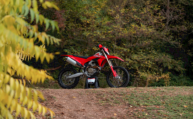 Ein erster Blick auf das Vorserienmodell der Desmo450 EDS lässt erkennen, für den Antrieb kommt ein 449,6 cm³ Einzylinder-Motor mit desmodromischer Ventilsteuerung zum Einsatz. Gepaart mit einem 6-Gang-Getriebe und einem 8,5 Liter Kraftstofftank, um den Anforderungen im Enduro-Bereich gerecht zu werden.