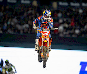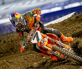 Nach den beiden Auftaktsiegen in der 450SX-Klasse der SMX-Weltmeisterschaft 2026 reisten Tomac und sein Team am Samstag mit dem Ziel nach Anaheim 2, auf der berühmten Rennstrecke in Südkalifornien eine weitere starke Leistung abzuliefern. Der 33-Jährige qualifizierte sich am Nachmittag auf seiner KTM 450 SX-F FACTORY EDITION als Siebter.