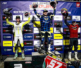 Dank seiner Ergebnisse 2-1-2 konnte sich Gómez in Belgrad den Gesamtsieg in der Juniorenklasse mit einem Punkt Vorsprung sichern und damit sowohl für den Spanier als auch für Stark den ersten Sieg in der SuperEnduro-Serie feiern. Shaw, der Zweiter wurde, liegt nun mit Schmüser punktgleich an der Spitze der Meisterschaft, zwei Läufe vor Schluss. Lampkin zeigte in Serbien eine starke Leistung und wurde mit dem dritten Platz bei seinem Debüt auf dem Podium belohnt. Strauss und Piazza belegten die Plätze vier und fünf.