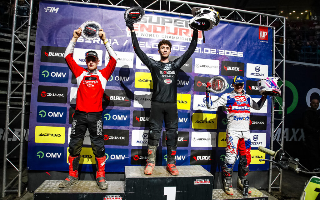 Wojtek Walczak (KTM), der sich im Youth Cup als der Fahrer etablierte, den es zu schlagen gilt, feierte beim SuperEnduro GP von Serbien einen Doppelsieg im Meisterschaftslauf. Der junge Pole zeigte sich in Belgrad von Beginn an stark und arbeitete sich im ersten Finale schnell auf den zweiten Platz hinter dem Spanier Eneko Martinez (Beta) vor. Er erhöhte den Druck, übernahm in der fünften Runde die Führung und sicherte sich schließlich den Sieg im ersten Rennen. Martinez belegte den zweiten Platz, während der Österreicher Luca Kropitsch (KTM) eine starke Leistung zeigte und Dritter wurde.