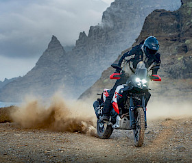 Auch die äußere Form der Tanks wurde neu gestaltet und trägt so zu einer verbesserten Ergonomie bei. Zusammen mit dem neuen einteiligen Rallyesitz, der fließend in den abgesenkten Tank übergeht, erleichtert sie den Wechsel vom Sitzen zum Stehen und erlaubt eine freiere Bewegung nach vorn oder hinten. Damit wird der Dual-Sport-Charakter der Maschine weiter gestärkt.