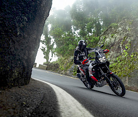 Die schräglagenabhängige Traktions- und Slide-Control nutzen IMU-Daten, um die Motorleistung anzupassen und den gewünschten Schlupf zu regeln. Beide Systeme bieten drei Modi – Street, Off Road und Off – damit der Fahrer den gewünschten Unterstützungsgrad wählen und auf jedem Untergrund optimale Traktion erzielen kann. Die Einstellungen werden über das Pop-up-Menü mittels „Mode“-Taste am rechten Lenkerschalter gewählt.