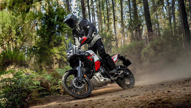 Der Federweg beträgt vorne 230 mm und hinten 220 mm – jeweils 20 mm mehr als bei der Standard-Ténéré 700.