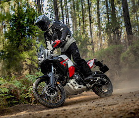 Für optimale Performance on- und offroad bleiben die Aluminium-Speichenräder unverändert: 21 Zoll vorn und 18 Zoll hinten. Passend zum Doppelnutzungscharakter sind Pirelli Scorpion Rally STR-Reifen montiert, die ein perfektes 50/50-Verhalten auf Straße und Gelände bieten – mit hervorragendem Grip bei Nässe und Trockenheit, hoher Agilität, Stabilität bei hohen Geschwindigkeiten, guter Traktion im Gelände und reduziertem Abrollgeräusch. Die Reifendimensionen betragen 90/90 vorn und 150/70 hinten.