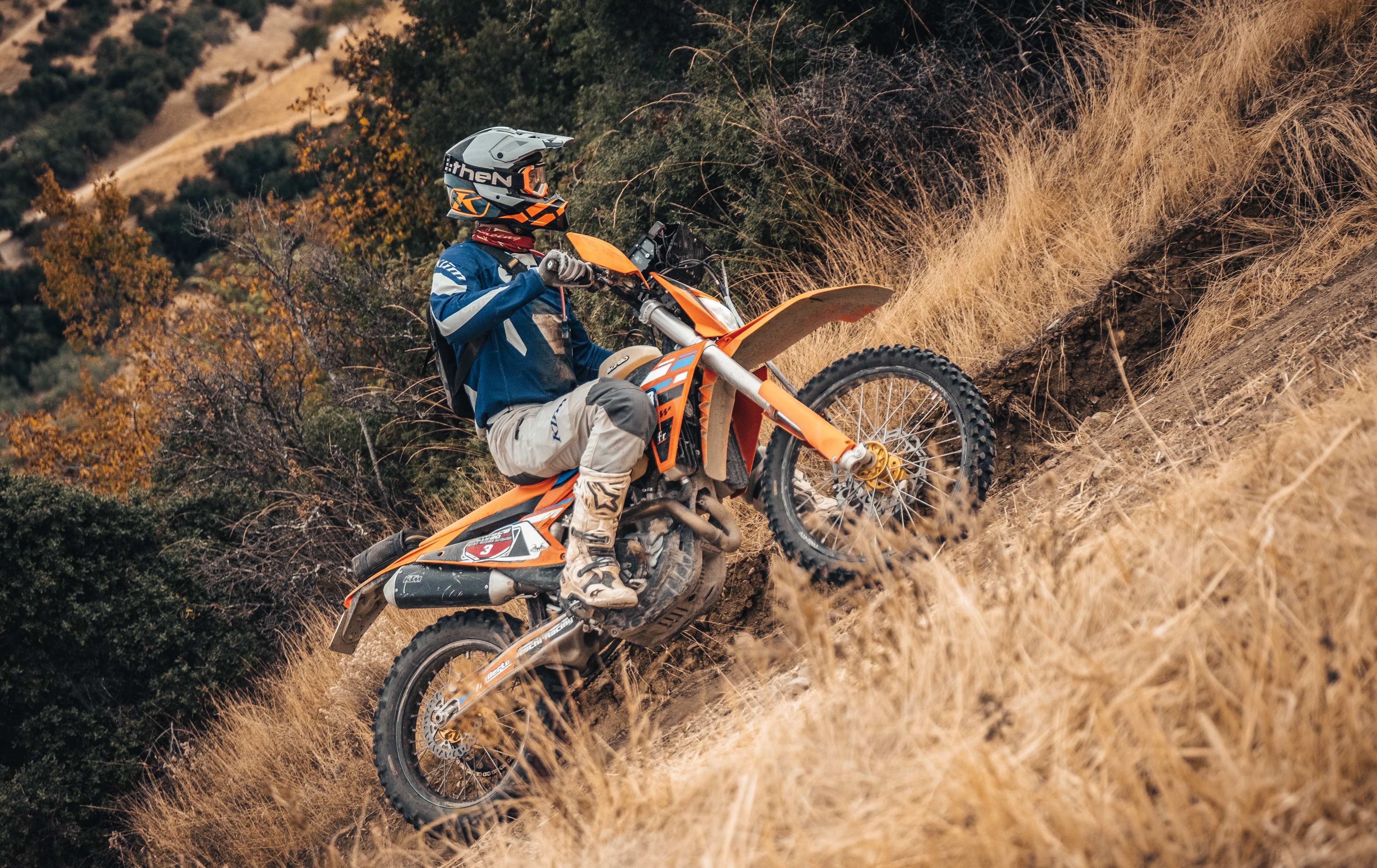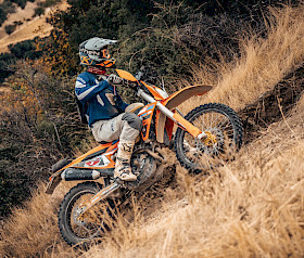 Der Weg bergab gestaltete sich als wirklich technisch. Da ich, wie fast alle anderen Fahrer, keinen ausgefahrenen Trail fand, ging es zwischen Bäumen und Felsen hinab, so steil, dass ich sogar kurz abstieg und das Motorrad schieben musste. Um Kilometer zehn erreichten wir eine Tränke – die Hälfte war geschafft und ich lag weiterhin richtig. Ab dort wurde das Gelände etwas dankbarer. Das Roadbook leitete uns zwar immer noch weit abseits des Tracks, aber es gab weniger Felsen, was nun ein flüssigeres Fahren ermöglichte.