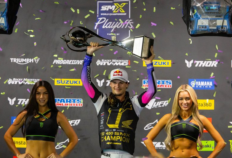 Honda HRC Progressive krönte auf dem Las Vegas Motor Speedway eine unglaubliche Saison 2025 mit einem Sieg bei der dritten Ausgabe der SuperMotocross-Playoffs. Jett Lawrence holte sich die 450er-Meisterschaft, während Jo Shimoda die 250er-Krone holte. Dies war das dritte Jahr, in dem die einzigartige Serie mit drei Rennen ausgetragen wurde, und Lawrence hat alle drei Titel der Königsklasse gewonnen; es ist gleichzeitig der zehnte AMA -Titel in seiner Karriere als Profi für Lawrence, der letzten Monat gerade 22 Jahre alt geworden ist.