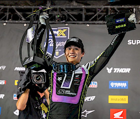 In den drei Läufen der SuperMotocross-Playoffs holte Shimoda dann zwei weitere Gesamtsiege und sicherte sich den Titel. Damit schrieb er Geschichte als erster japanischer Fahrer, der eine professionelle AMA-Meisterschaft gewann.
