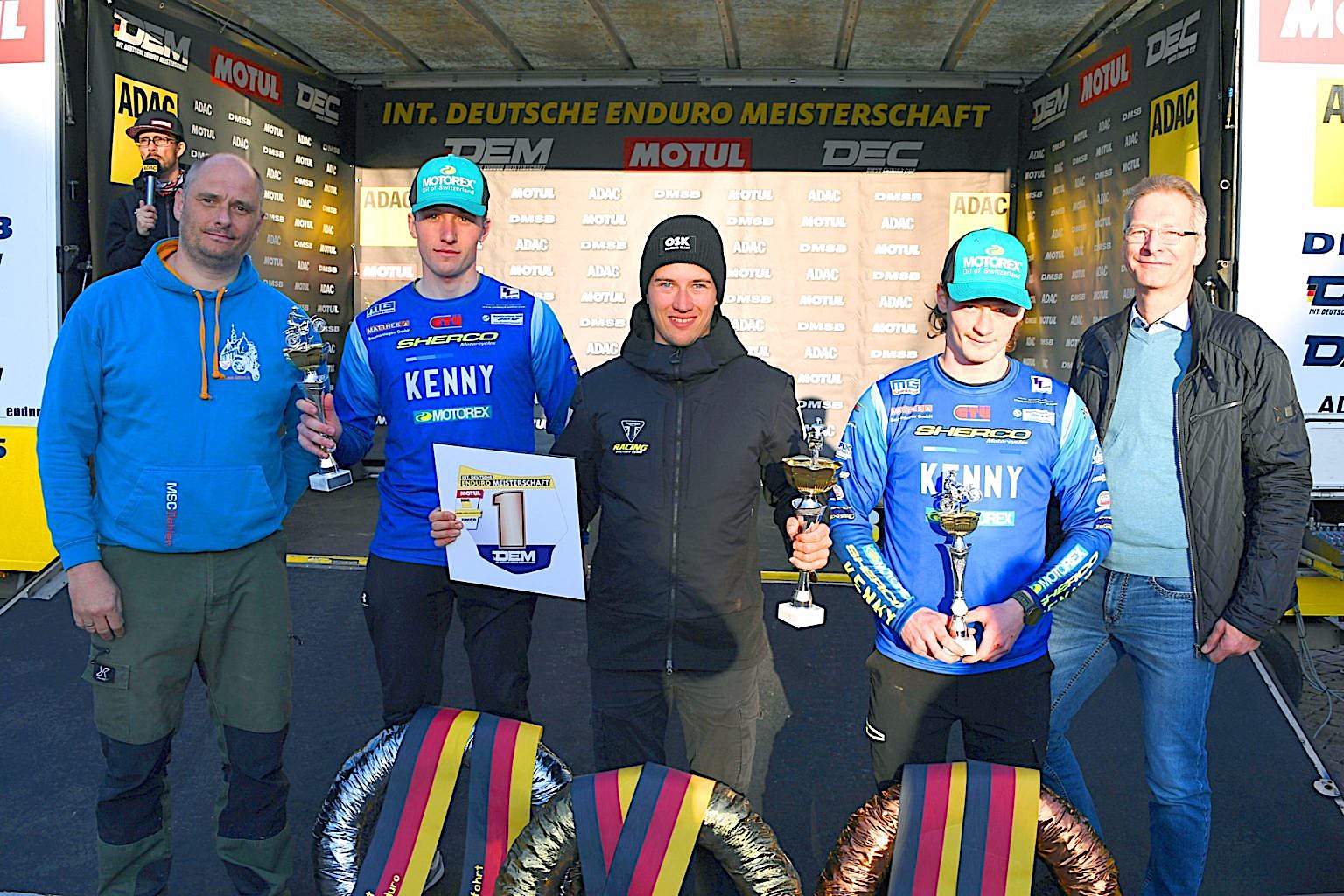 Damit standen bei der abschließenden Siegerehrung für die klassenübergreifende Championats- und Tageswertung gleichzeitig auch die drei Klassensieger gemeinsam auf dem Podest. Jeremy Sydow hatte logischerweise gleichzeitig seine hubraumschwächste Kategorie E1 gewonnen, Matyas Chlum trat in der E2 an und gewann diese, ebenso Luca Fischeder in der E3.