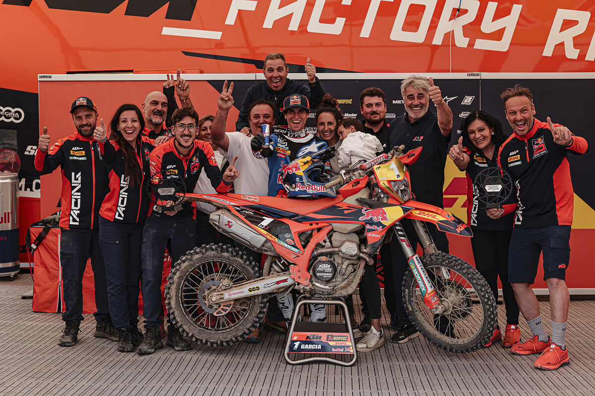 Trotz nächtlichem Regen blieben die Tests am Sonntag größtenteils trocken, nur wenige Abschnitte stellten eine größere Herausforderung dar. Garcia meisterte die Bedingungen und den Druck seiner Konkurrenten gelassen und zeigte erneut eine meisterhafte Leistung. Er gewann erneut sowohl die Gesamtwertung der EnduroGP- als auch der Enduro1-Klasse und rundete sein perfektes Wochenende ab.