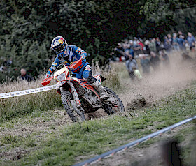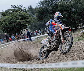 Josep Garcia: „Ich bin wirklich zufrieden mit meinem Wochenende hier in Wales. Zu diesem Zeitpunkt der Meisterschaft an beiden Tagen zu gewinnen, ist wirklich wichtig. Der Samstag lief wirklich gut für mich. Ich fühlte mich auf Anhieb wohl auf dem Motorrad und konnte meinen Vorsprung von der Spitze aus behaupten. Nach dem Regen am Sonntag dachte ich, die Tests würden deutlich nasser werden, und so habe ich hinten ein viel weicheres Mousse aufgezogen. Aber es trocknete schnell ab und ich musste wieder auf ein härteres wechseln. Nachdem ich es wieder gewechselt hatte, konnte ich viel mehr Gas geben. Nach einem guten Kampf mit Zach (Pichon) habe ich den Sieg geholt. Ich fühle mich gerade richtig gut, das Motorrad funktioniert perfekt und ich freue mich auf dieSix Days Ende des Monats.“