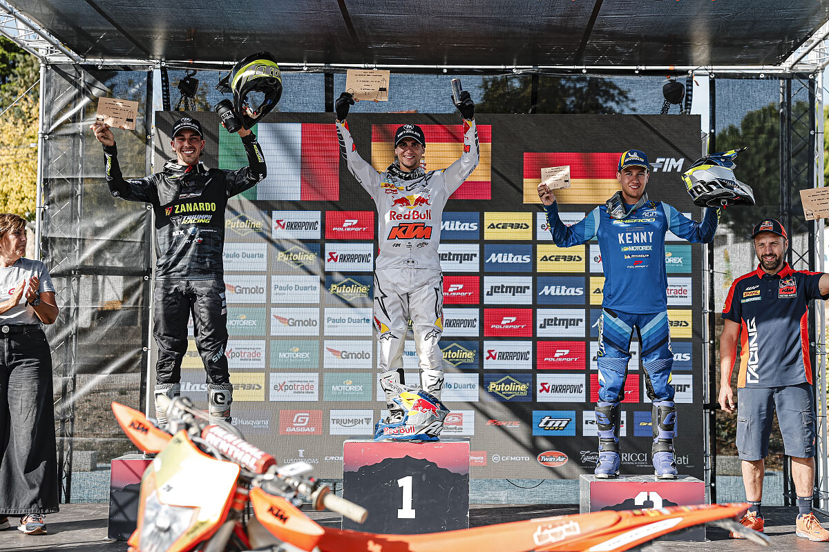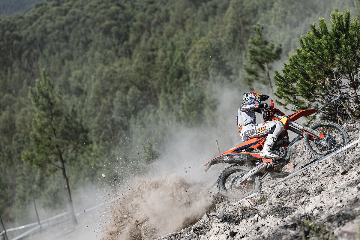 Am ersten Tag lieferte Garcia in den portugiesischen Sonderprüfungen eine Meisterleistung im Enduro-Sport ab. Er gewann sechs der neun Prüfungen und landete nie außerhalb der Top Drei. Besonders den Enduro-Test dominierte er und fuhr in allen drei Runden die schnellste Runde. Der KTM 250 EXC-F-Fahrer, der sich unter den harten Bedingungen souverän zurechtfand, holte sich den Gesamtsieg mit 18 Sekunden Vorsprung und stürmte zu einem souveränen Enduro1-Sieg, bei dem er alle Prüfungen seiner Klasse gewann und mit einer Minute und 16 Sekunden Vorsprung auf seinen nächsten Verfolger ins Ziel kam.
