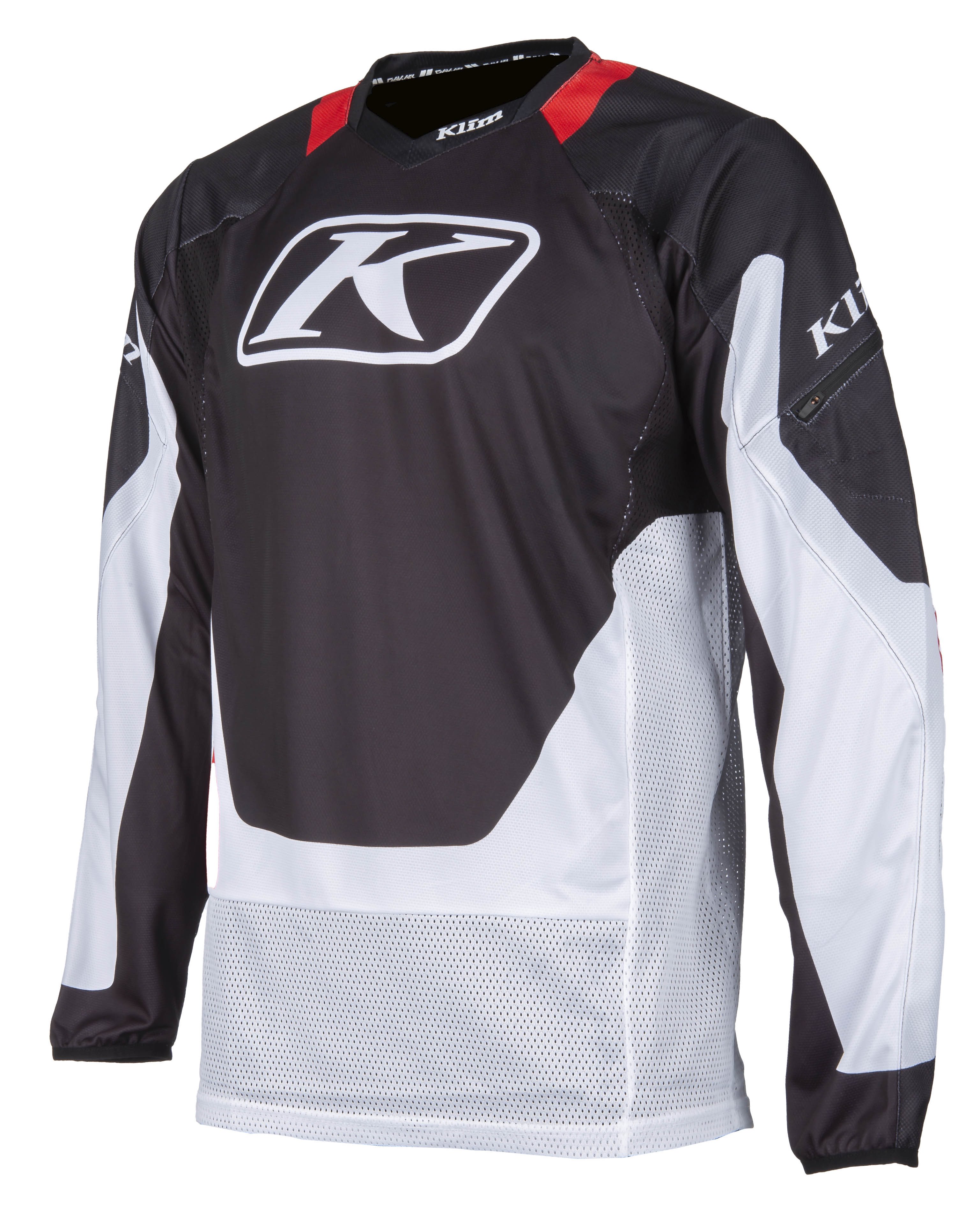 Beim DAKAR Jersey sorgen Mesh-Zonen für optimale Luftzirkulation und Stretch-Einsätze für volle Beweglichkeit, zusätzlich gibt es eine kleine, praktische Reißverschlusstasche am linken Oberarm.