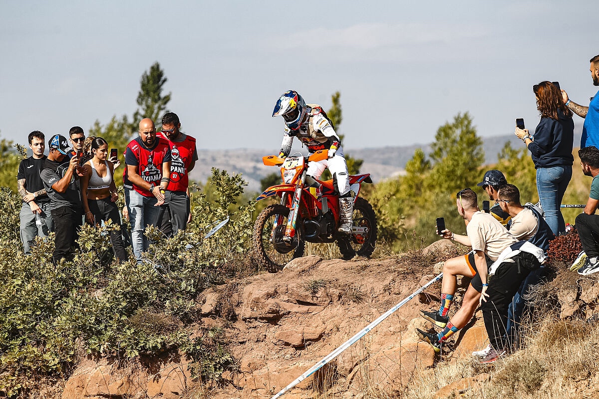 Der Qualifying-Prolog am Samstag bestand aus einer freien Trainingsrunde, gefolgt von zwei Einzelzeitläufen auf einem engen und technisch anspruchsvollen Kurs durch felsiges Gelände, nahe der Stadt Aguilar de Campoo. Lettenbichler brauchte Zeit, um das perfekte Setup seiner KTM 300 EXC zu finden und zeigte eine starke, aber kalkulierte Leistung, die ihm vor dem Hauptrennen eine Top-3-Startzeit sicherte.