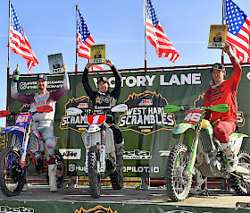 Nachdem er in den ersten beiden Runden jeweils Zweiter geworden war, wollte der 23-Jährige beim Golden Shamrock Hare Scramble unbedingt ganz oben auf dem Podium stehen und fuhr mit seiner Husqvarna FE 450 auf dem schwierigen, staubigen Terrain in der Nähe von Doyle, Kalifornien, einen überzeugenden Start-Ziel-Sieg ein.