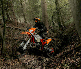 Wie der Name schon andeutet, ist die HARDENDURO gebaut, um das härteste Terrain zu meistern. Sie verfügt über eine Auswahl an spezifischen HARDENDURO-Komponenten, die sie klar von den anderen Modellen der KTM-Enduro-Reihe abheben.