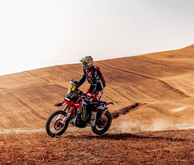 Skyler Howes: „Der Prolog verlief etwas anders als erwartet. Man hatte uns von sehr rutschigen Strecken mit vielen Klippen erzählt, aber es waren wirklich große, hügelige Felder, was eigentlich ganz angenehm war und uns etwas mehr Traktion verschaffte als erwartet. Ich hatte einen sauberen Lauf, habe auch ein paar Anpassungen am Motorrad vorgenommen. Die Etappe hat mir sehr viel Spaß gemacht. Ich bin froh, dass ich starten konnte und freue mich nun darauf, in die Wüste aufzubrechen.“