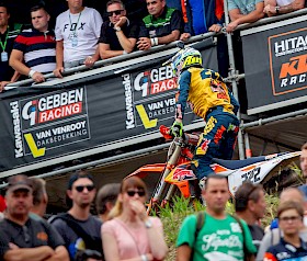 MXGP Race 2 Top Ten: 1. Jeffrey Herlings (NED, KTM), 34:33.827; 2. Antonio Cairoli (ITA, KTM), +0:31.568; 3. Tim Gajser (SLO, Honda), +0:37.056; 4. Romain Febvre (FRA, Yamaha), +0:51.917; 5. Jeremy Van Horebeek (BEL, Yamaha), +0:57.637; 6. Gautier Paulin (FRA, Husqvarna), +1:00.420; 7. Clement Desalle (BEL, Kawasaki), +1:02.022; 8. Jeremy Seewer (SUI, Yamaha), +1:02.791; 9. Glenn Coldenhoff (NED, KTM), +1:03.549; 10. Kevin Strijbos (BEL, KTM), +1:30.621.