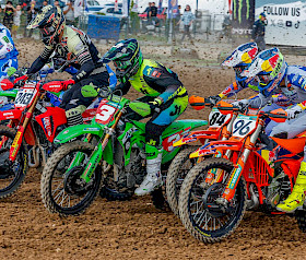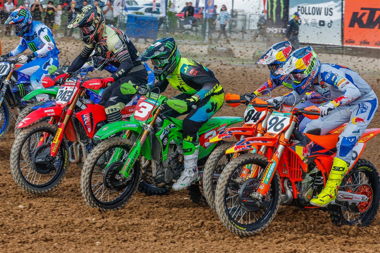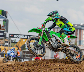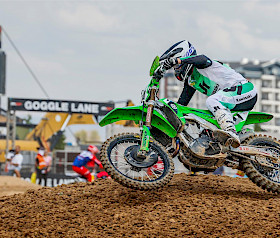 Im ersten Lauf geriet er auf dem Weg zur ersten Kurve in Bedrängnis, doch schon nach einer halben Runde lag er auf Platz vier. Ein geschickter Wechsel in einer zweispurigen Kurve brachte ihn in Runde sieben auf Platz drei. In den letzten zehn Minuten startete der Kawasaki-Fahrer noch einen Angriff auf Platz zwei, doch leider fehlte zum Schluss die Zeit für ein erfolgreiches Fahrmanöver. Zu Beginn des Rennens behielt Romain Febvre seine Nerven und verpasste nur knapp den Holeshot, hatte aber in Kurve zwei die volle Power und führte. Die Hälfte des Rennens lag er souverän in Führung, bis ihn ein Manöver seines Verfolgers überraschte. Das Führungstrio blieb bis zum Schluss dicht dran, als Febvre einem Angriff in der letzten Runde erfolgreich standhielt und Zweiter im Lauf und Dritter in der Tageswertung wurde. Er geht nun mit einem Vorsprung von 26 Punkten in die letzten beiden Läufe der Meisterschaft.