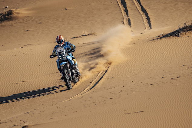 Ténéré Spirit Experience (TSE) - Fahrer Kevin Gallas sicherte mit dem dritten Platz ein Doppelpodium. Fünf Ténérés landeten unter den ersten Zehn, da seine TSE-Teamkollegen Mike Wiedemann (7.) und Antonion Maio (10.) den Tag zu einem hervorragenden Erfolg für das Team machten.