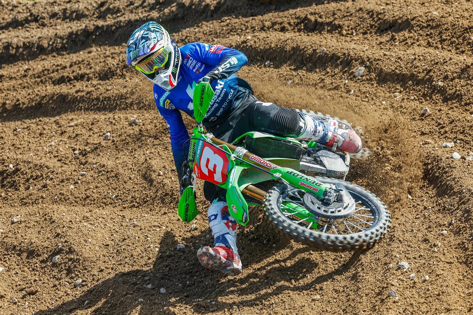 Der Kawasaki-Spitzenreiter holte mit seiner KX450-SR im ersten Rennen den ersten von zwei starken Holeshots. Als die Linien in Kurve drei zusammenliefen, gab er die Führung kurzzeitig ab, hatte sie aber wieder unter Kontrolle und konnte sich schon vor Kurve vier absetzen. Innerhalb weniger Runden hatte er einen Vorsprung von sechs Sekunden herausgefahren und verteidigte diesen, um einen klaren, aber knappen Sieg zu erringen, obwohl die holprige Strecke mehrere Opfer forderte. Da sein Titelrivale auf den siebten Platz beschränkt war, baute der Franzose seinen Vorsprung in der Gesamtwertung vor dem zweiten Rennen ebenfalls auf 25 Punkte aus. Ein weiterer klarer Holeshot – sein siebter der Saison – legte den Grundstein für ein perfektes Wochenende. Doch der Franzose verteidigte seinen relativ kleinen Vorsprung von wenigen Sekunden, anstatt zu riskieren, über die Grenzen zu gehen. Er blieb cool, nachdem er in Runde acht den Motor abgewürgt hatte und die Verfolger an sein Hinterrad gelangt waren, hielt dem Druck stand und setzte sich wieder ab. Da sein Meisterschaftsrivale wieder im Feld steckte, war es unerlässlich, Risiken zu vermeiden.