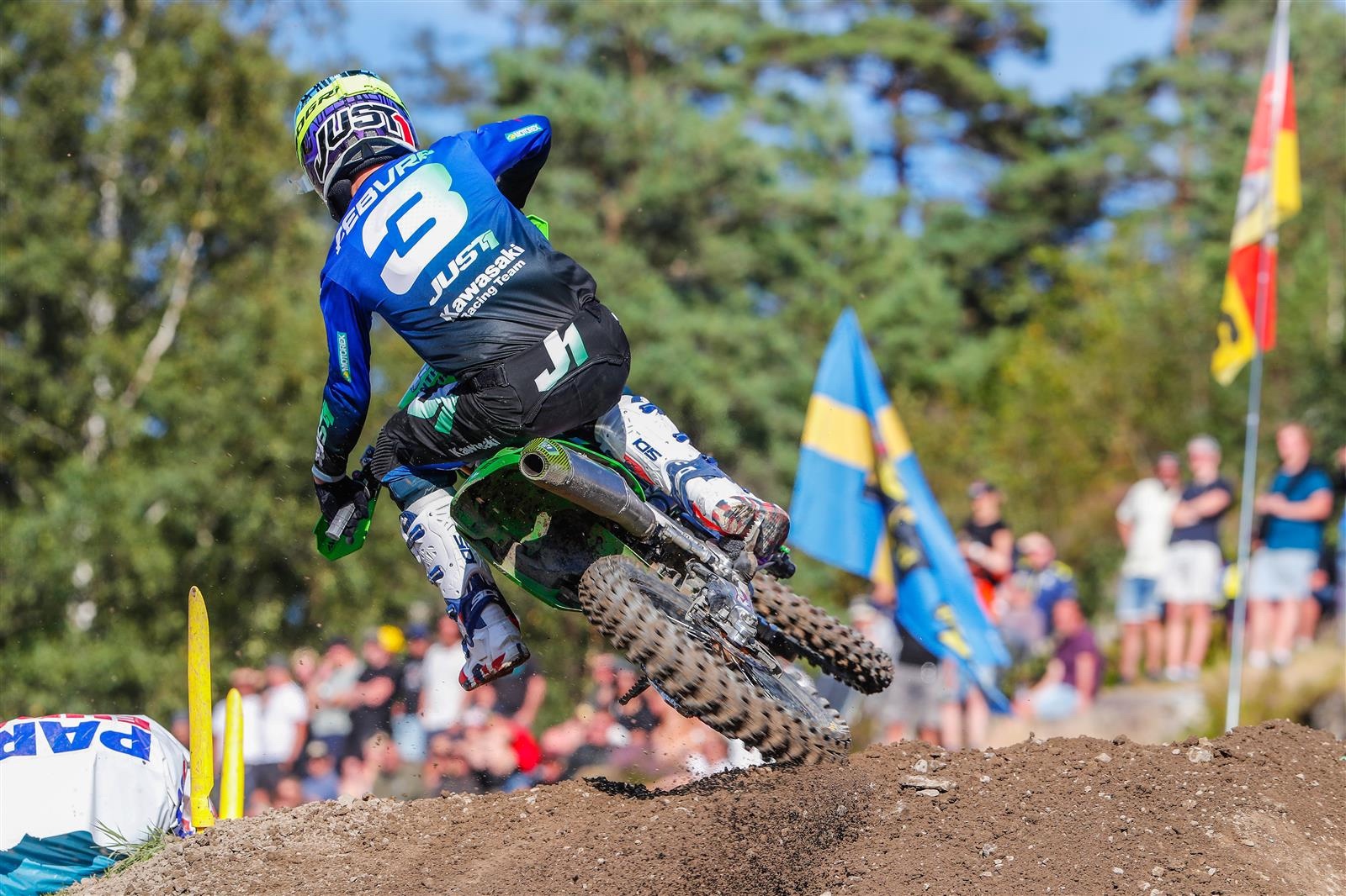 Romain Febvre vom Kawasaki Racing Team MXGP stellte in der FIM Motocross-Weltmeisterschaft MXGP im schwedischen Uddevalla seine Souveränität unter Beweis und holte drei Siege. Damit baute er seinen Vorsprung in der Gesamtwertung bei noch vier verbleibenden GPs auf 41 Punkte aus.