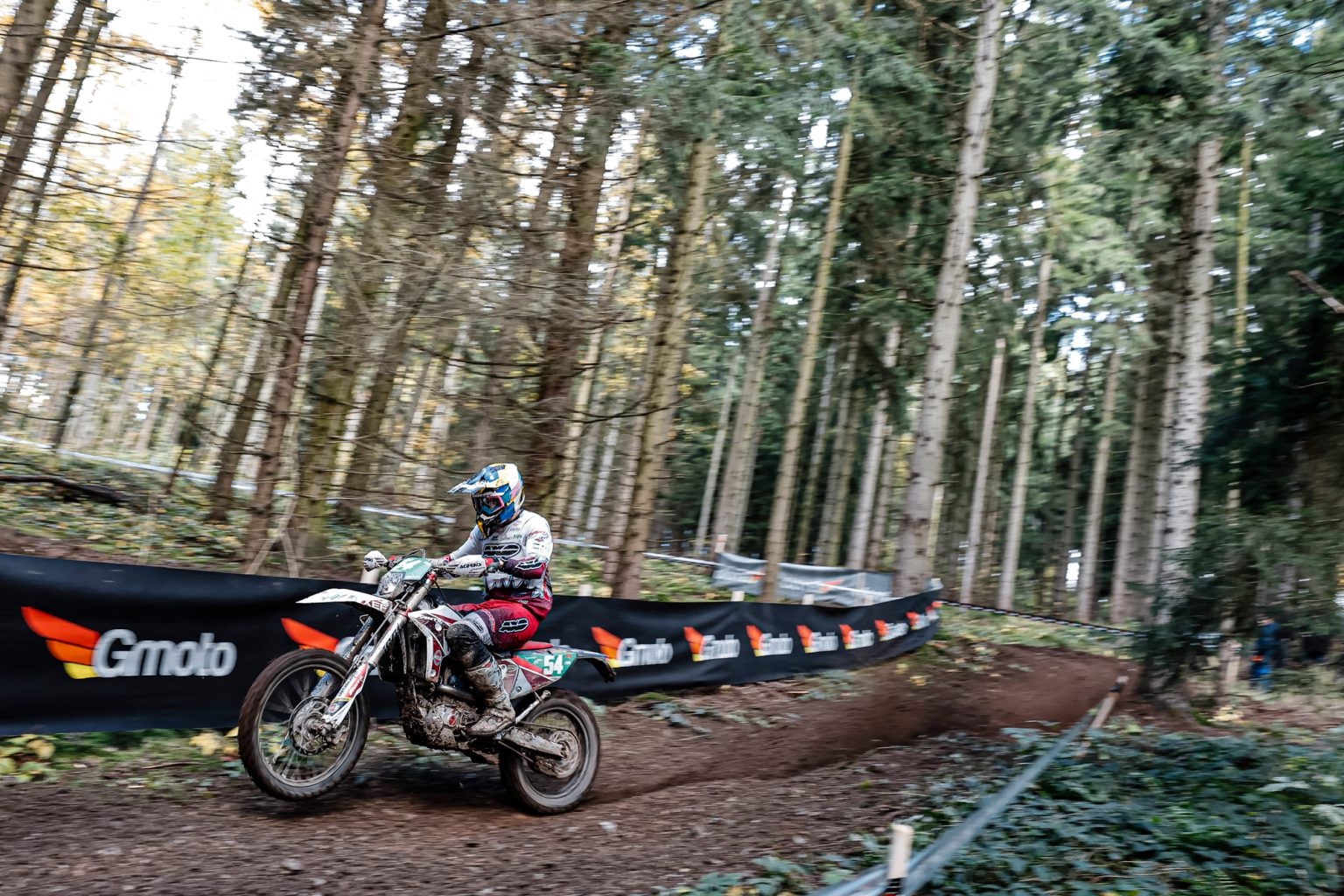 Die Junior-Enduro-Klasse erlebte einen dramatischen Tag. Kevin Cristino vom Fantic Factory Racing Enduro Team Specia kam mit einem starken 15-Punkte-Vorsprung zum POLISPORT GP von Deutschland, doch dieser Vorsprung schwand durch einen kritischen Ausfall. Der Tag des Italieners verlief immer schlimmer und Cristino schied schließlich in der letzten Runde aus.