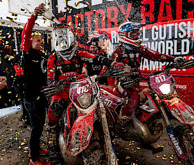Der zweite Tag des POLISPORT GP von Deutschland stand ganz im Zeichen der Feierlichkeiten, denn die diesjährigen Weltmeister der Paulo Duarte FIM EnduroGP-Weltmeisterschaft wurden gekrönt. Ab Mittag wurden die Meisterschaftssieger nacheinander gebührend begrüßt.