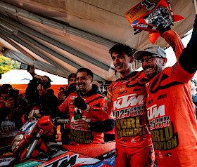 Josep Garcia (KTM): „Zwei EnduroGP-Titel in Folge zu gewinnen, ist ein wahr gewordener Traum. Es war ein unglaubliches Jahr mit Höhen und Tiefen, aber die Siege in der EnduroGP und Enduro1 bedeuten mir alles. Jetzt ist es Zeit zu feiern. Vielen Dank an alle, die mich unterstützen, KTM, meine Familie, meine Freunde. Das ist eine Teamleistung.“
