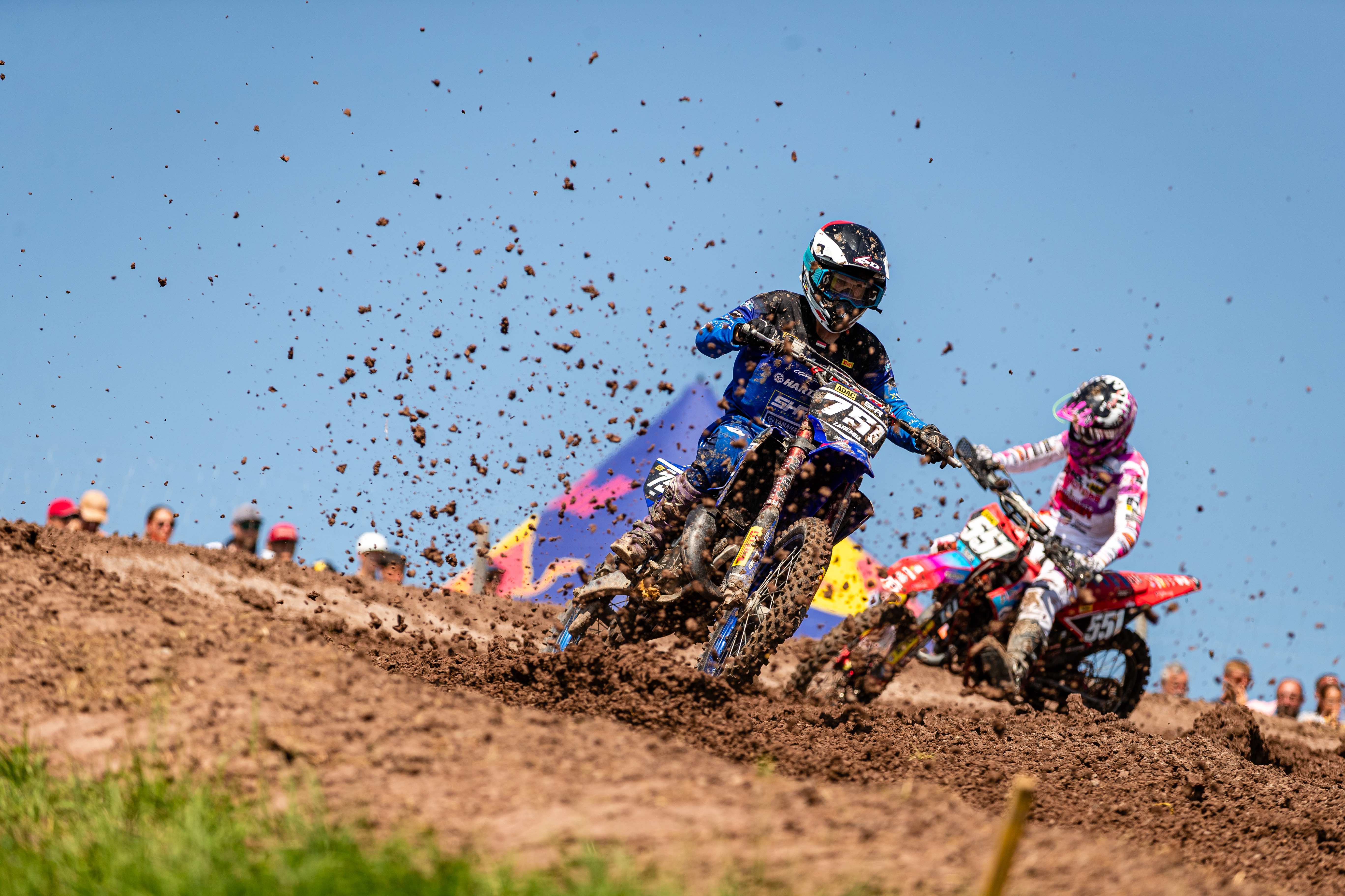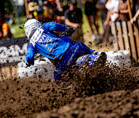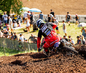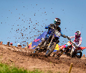 Bei unseren beiden MX1-Fahrern lief der Start zum zweiten Wertungslauf nicht ganz optimal ab. Emil und Mike mussten sich von hinten durchs Feld kämpfen, lieferten sich dabei sogar ein kleines teaminternes Duell und landeten schließlich auf den Plätzen 16 und 17. Im letzten Lauf des Wochenendes war die Hitze kaum mehr zu ertragen. Dennoch gaben beide noch einmal alles. Ein Sturz von Emil warf ihn weit zurück, sodass er am Ende nur auf Platz 28 ins Ziel kam. Mike änderte zum dritten Lauf noch einmal die Taktik am Start, was sich auch im Ergebnis widerspiegelte. Auf Platz 10 liegend ging es für ihn ins Rennen. Ein Sturz in der ersten Rennrunde ruinierte jedoch die gute Ausgangslage. Vom letzten Platz nahm Mike mit sehr viel Kampfgeist die Verfolgung auf. Mit Rundenzeiten, die in den Top 10 lagen, fuhr er konstant durch das Fahrerfeld und überholte im Rennverlauf über 20 Fahrer. Eine sehr beeindruckende Vorstellung. Mit Platz 17 wurde der Einsatz abschließend auch noch mit wichtigen Punkten für die Meisterschaftswertung belohnt.