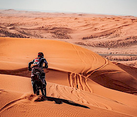 Nachdem die Dünenfahrten zu Beginn der Rallye nur kurzzeitig auf dem Programm standen, bot die sechste Etappe ab Hail eine echte Herausforderung im Sand. Als längster Tag der diesjährigen Dakar forderte die 915 km lange Strecke nach Riad beide Fahrer körperlich und mental bis an ihre Grenzen.