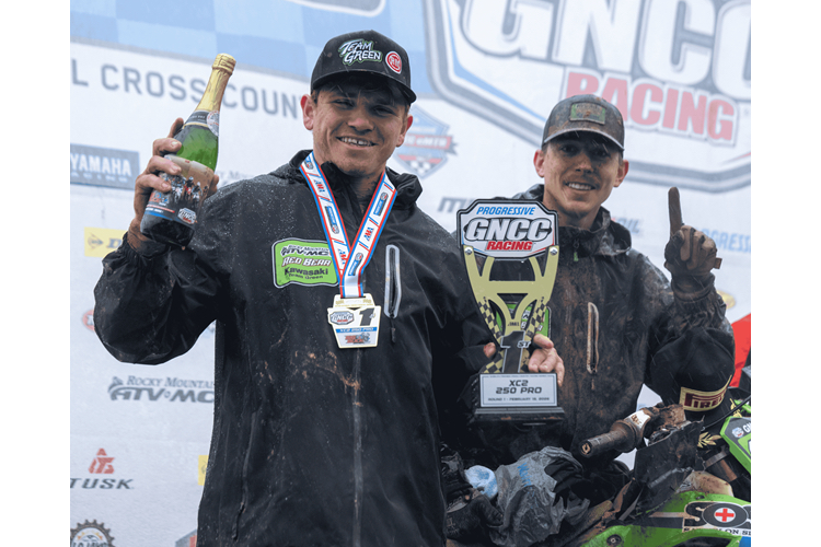 Nick DeFeo sorgte auf seiner KX 250X erneut für Schlagzeilen, nachdem er im Vorjahr beim Saisonauftakt unter ähnlichen Bedingungen bereits GNCC-Geschichte geschrieben hatte. DeFeo fuhr die ersten beiden Runden des Rennens auf dem zweiten Platz. In Runde 3 setzte er sich an die Spitze seiner Klasse und pflügte ohne Zeitverlust durch den Schlamm, um schließlich den Großteil der verbleibenden Runden in Führung zu liegen. Die sich verschlechternde Strecke machte DeFeo in der letzten Runde zu schaffen und verhinderte seinen zweiten Gesamtsieg in Folge. Dennoch reichte sein Vorsprung aus, um die XC2-Klasse mit fast einer Minute Vorsprung zu gewinnen.